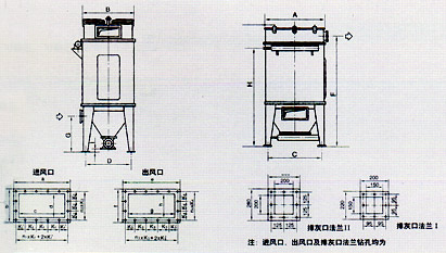 含塵氣流從進(jìn)氣口進(jìn)入下箱體后,部分沉降,輕微粉塵浮動(dòng)時(shí)被濾袋阻留,凈化空氣透過(guò)濾袋,經(jīng)文氏管進(jìn)入上箱體,從出氣口排出。積附在濾袋外壁的粉塵不斷增加,當(dāng)阻力在限定(一般為80-120毫米水柱)的范圍內(nèi),就要清除積附在濾袋外壁的粉塵,清灰是由控制儀定期順序觸發(fā)各控制閥,開(kāi)啟脈沖閥,使氣包內(nèi)的壓縮空氣由噴吹管孔噴出(一次風(fēng))通過(guò)文氏管誘導(dǎo)數(shù)倍于一次風(fēng)的周?chē)諝猓ǘ物L(fēng))進(jìn)入濾袋,使濾袋在一瞬間急劇膨脹并伴隨著氣流的反向作用,被抖落的粉塵落入灰門(mén)經(jīng)排灰閥排出機(jī)體。